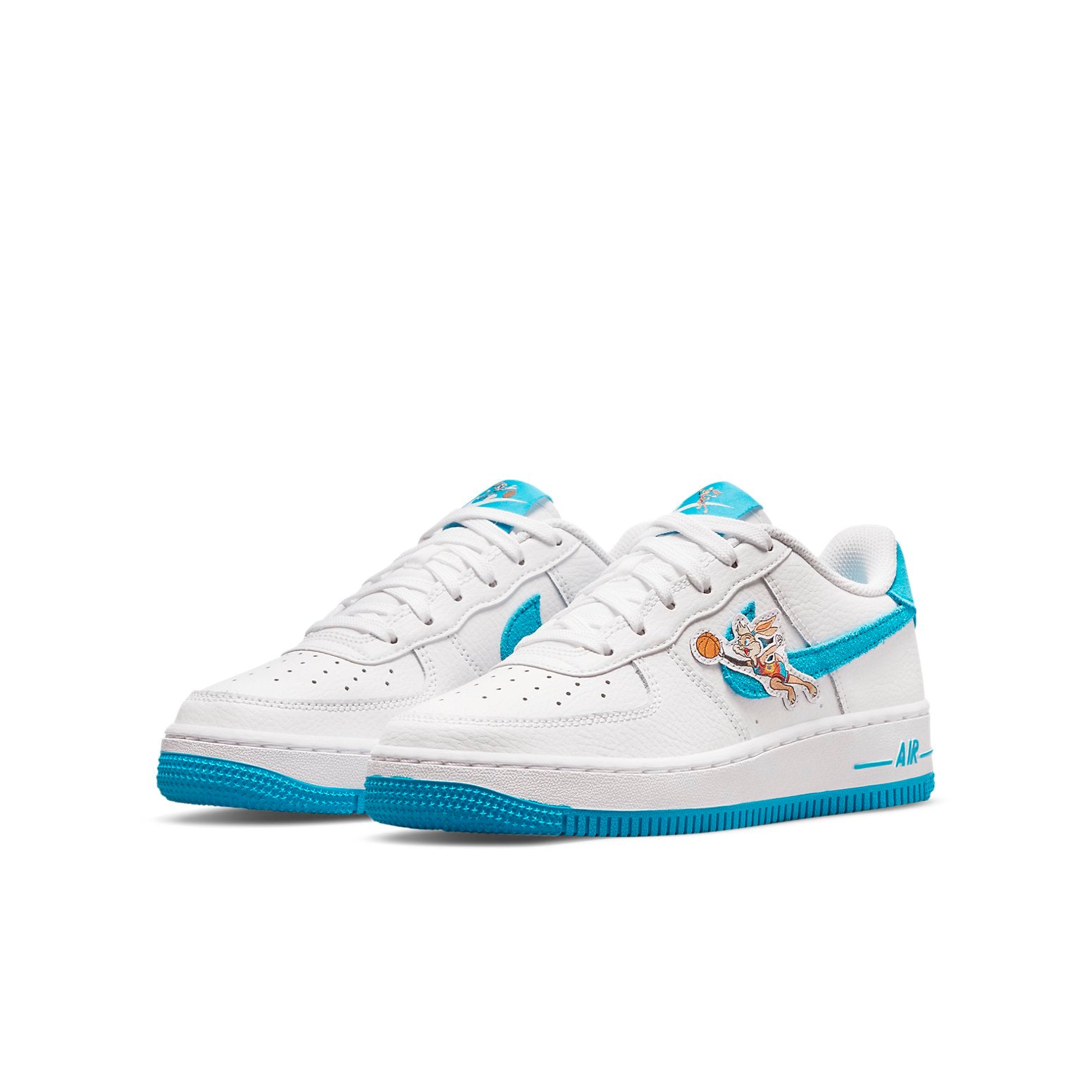 Presentazione della Nithtke Air Force 1 GS "Hare", parte di una collezione più ampia che celebra l'uscita dell'attesissimo film "Space Jam: A New Legacy". Queste scarpe sono realizzate in fresca pelle bianca, con accenti Light Blue Fury tra cui uno Swoosh in pelle scamosciata ed etichette sulla linguetta non corrispondenti con Bugs Bunny e Lola Bunny. Gli stessi caratteri compaiono sulle toppe affisse sul pannello laterale di ciascuna scarpa. La scarpa bassa si basa su una suola preformata in gomma bicolore, rinforzata dall'ammortizzazione Air-sole incapsulata sotto il tallone. Che tu sia un fan del film o meno, queste scarpe faranno sicuramente girare la testa e ti faranno notare. Acquistane un paio oggi e unisciti all'Air Force!